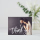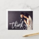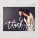 Tackkort med fet borstskrift och bröllopsfoto vykort