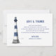 Enkelt tackkort med foto (övertoning är valfritt). Baksidan har en handritad blå och vit fyr med ett tackmeddelande.