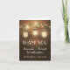 Tackkort med lantlig lada och murarvas i trä - designen har lampor och upplysta murarvas som hänger från en gren med en bakgrund av gammalt trä och dekorativ baksida.