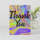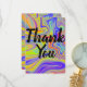 Tacka alla som var med och gjorde din bröllopsdag extra speciell med detta tackkort, med tryckt marmorerad pappersstruktur i regnbågens färger för ett roligt och snett tackkort.