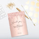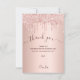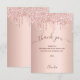 En rosa guld bakgrund, dekorerad med falska glittret-dropar, målarfärg som dropar. Stor handskriven text med svängar och texten: Tack. Personifiera och lägg till din tacknota och namn.