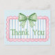 Det här söta tackkortet har en rosa ram med blå och vita ränder och är prytt med en snygg grön och vit rutig rosett. Personifiera med ditt val av speciell text.