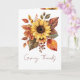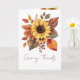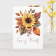 Fira skönheten av tacksamhet med detta livfulla höstkort, med en gyllene solros omgiven av färgglada höstblad och bär. Det handskrivna ”Tack”-meddelandet tillför värme och uppriktighet, medan det tomma inre låter dig anpassa din hälsning för alla tillfällen. Ett vackert sätt att dela uppskattning under denna säsong.