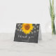 Tackkort för bröllop med solros, strängljus och svart tavla.