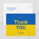 Tack Anpassat Ukrainskt Flagga Blå och Gul Typografi Bröllopskort utan bilder. Bröllop Tackkort, Elegant modern design utan seriffer text Postkort i levande och skarpa blå och gula färger.
