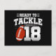 Denna roliga fotbollsfödelsedagsdesign är perfekt för en 18-årsdag fotbollstema födelsedagsfest för att fira att man fyller 18 år! Det är också bra för en 18-års bröllopsdag för par som firar sin 18-årsdag tillsammans. Funktioner "Redo att tackla 18" citat med fotbollsgrafik. Perfekt för alla som älskar fotboll!