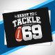 Denna roliga fotbollsfödelsedagsdesign är perfekt för en 69-årsdag fotbollstema födelsedagsfest för att fira att man fyller 69 år! Det är också bra för en 69-års bröllopsjubileum för par som firar sin 69-årsdag tillsammans. Funktioner "Redo att tackla 69" citat med fotbollsgrafik. Perfekt för alla som älskar fotboll!