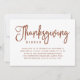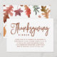 Bjud in dina vänner och familj till tackmiddag med dessa stilfulla inbjudningar! En vit bakgrund visar rik, brun modern handskriven typsnittsdesign. Baksidan av tackinbjudan visar ett vackert mönster av höstlöv.