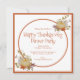 Inbjudan till tackmiddagsfest designad med pumpor och höstfärgade blad på en ljus orange och vit bakgrund med inbjudantext inklusive: datum, tid och RSVP-information. Baksidan är en matchande orange höstfärg. För att anpassa, ersätt bara exempeltexten med vår steg-för-steg-mall. Njut!