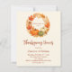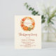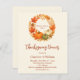 En varm, mjuk beige bakgrund. Dekorerad med hösttema krans med orange lövverk och pumpor. Med texten: Thanksgiving Dinner skriven med en modern handstilsstil. Anpassa och lägg till detaljerna.