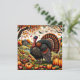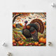 En folklig konstscen med en majestätisk vild kalkon omgiven av traditionella skördeprodukter, inramad av höstfoliage.