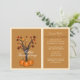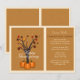 Bjud in dina gäster till Thanksgiving Dinner med stil med denna inbjudan i form av ett Thanksgiving-träd. Den har höstfärger och tre pumpor vid foten av ett träd.