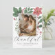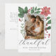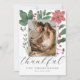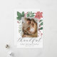 Skapa ditt eget vackra julkort för att skicka till dina vänner och familj denna högsäsong! Den eleganta och minimalistiska designen visar ett eget foto och elegant typografi nedanför, med din "tacksamma" hälsning i ett chic script och din information i snygg typografi längst ner. På baksidan finns ett anpassningsbart meddelande med era namn. Fotot är inramat av chic vinterbotanik: gröna akvarellblad och röda bär. Gör det unikt genom att ersätta texten och bilden genom att klicka på "Personliggör"-knappen. Det kan också fungera som ett tack för baby shower eller födelseannonsering denna jul!