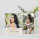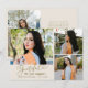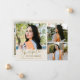 Modern och elegant examensbevis fotokort med 3 bilder på framsidan och 1 på baksidan. Texten står "tack för ditt stöd" i skrivstil. Lägg till examenstagarens namn, information och meddelande för att anpassa detta kort. Kräm.