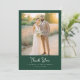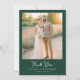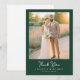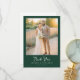 Det här bröllopstack-kortet har ett vackert sammansatt fotografi av ett par som står på en grusväg omgiven av höga gräs, badade i den varma glansen från solnedgången. Designen inkluderar en mörkgrön ram runt bilden, med elegant kursiv typografi för "Tack" och anpassningsbara platshållare för namn, mot en kontrasterande bakgrund för att säkerställa läsbarhet. Färgpaletten domineras av mjuka naturliga toner, vilket skapar en lugn och harmonisk estetik som förmedlar tacksamhet och firande. Perfekt för att uttrycka uppskattning efter en speciell tillställning, kombinerar detta kort fotografisk realism med en touch av romantik genom sin skildring av enhet och partnerskap.