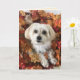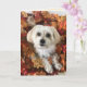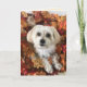 Att tumla runt i höstlöven är en del av vardagen för denna lilla Morkie. Nu är han redo för lite kramar och...kanske en liten bit pumpapaj? Välj denna söta hund som gratulationskort eller inbjudan för höstsäsongen!