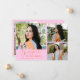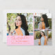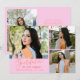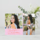 Modern och elegant examensannonserings fotokort med 3 bilder på framsidan och 1 på baksidan. Texten säger "tack för ditt stöd" i skrivstil. Lägg till examenstudentens namn, information och meddelande för att anpassa detta kort. Orange och rosa.