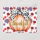 Omfamna den mysiga charmen av hösten med denna Tacksamma pumpan med prickig slinga-design. Med en vacker illustrerad generativ pumpa dekorerad med en chic svart-vit slinga och elegant script-typografi, blandar denna design perfekt lantlig värme med modern stil.