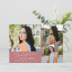 Modern och elegant examensbevis fotokort med 3 bilder på framsidan och 1 på baksidan. Texten säger "tack för ditt stöd" i skrivstil. Lägg till examenstudentens namn, information och meddelande för att anpassa detta kort. Rosa.