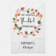 Tacksam Tacksam Salig Löv Faller Kökshandduk. Personalisera handduken med deras namn. Två rader med personalisering.