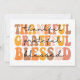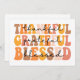 Designen med titeln "Tackfull, Tacksam, Välsignad" är en livfull och uppmuntrande representation av högtiden Thanksgiving. Den visar tre nyckelord som var och en uttrycker en känsla av tacksamhet och positivitet.