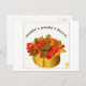 Fånga essensen av Thanksgiving med detta inspirerande vykort som visar en blomster- och tallkottearrangemang i en pumpakorg. Påminn de runt omkring dig om vikten av att vara tacksamma, tacksamma och räkna sina välsignelser.