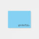 Ett blått klibbigt anteckningsblock med ord "tacksamhet" vid grund.