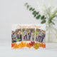 Detta vackra, moderna tackgivelsekort för familjefoto har en kollage med 3 fotografier under orden tacksam och välsignad. Detta eleganta höstlövfotografi med trendig vit träbakgrund bakom bladen är ett chic julkort att dekorera med bilder på dina barn.