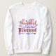 Långärmadens tröja för kvinnor med designen tacksam och välsignad.