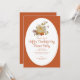 En Tacksgiving Day Middagskalas Inbjudan designad med höstfärgade blad och en akvarellpumpa, på en ljus orange och vit bakgrund med inbjudantext: Datum, Tid och RSVP-information. Baksidan i matchande skördeorange färg. För att anpassa, ersätt bara exempeltexten med vår steg-för-steg-mall.