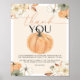 Vi presenterar vår tackskylt för Pumpa Baby Shower, ett varmt och genomtänkt tillägg till din hösttematiska firande. Med en charmig pumpadesign uttrycker denna skylt din tacksamhet till gästerna för deras närvaro och gåvor. Perfekt för att förhöja din baby shower-dekoration, lägger den till en personlig touch samtidigt som din uppskattning förmedlas på ett stilfullt och festligt sätt.