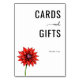 Denna bröllopsdekoration har en minimalistisk design med rena linjer och gott om vitt utrymme, vilket ger en elegant och modern estetik. Den livfulla röda blommillustrationen ger en färgklick mot den vita bakgrunden, medan den feta svarta typografin stavas ut "KORT OCH GÅVOR" i en stilfull blandning av sans-serif och serif-teckensnitt. Ett enkelt "Tack" meddelande är elegant placerat till höger, vilket förstärker det övergripande temat tacksamhet. Perfekt för att uttrycka uppskattning på din speciella dag, kombinerar denna skylt sofistikation med värme, vilket gör den till ett idealiskt tillägg till alla bröllopsfirande.
