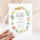 Taco, om en inbjudan från baby till din barnduschfiesta! Feature cactus-konstruktioner och all sak-fiesta som en sombrero, tacos, chip och salsa!