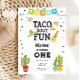 Taco Bout Roligt Uno Fiesta Boy 1:a födelsedag Inbjudningar
