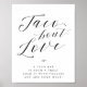 Elegant kalligrafisk vigselskylt - Taco om kärlek Tacobuffé skylt i vackra, flytande, fina bokstäver och din personliga text. En stilren men enkel formell design i svart och vitt eller valfri bakgrundsfärg du väljer. Klicka bara på länken anpassa ytterligare, som visas under området för textanpassning till höger, och välj din anpassade bakgrundsfärg. Denna skyltmall gör det snabbt och enkelt att skapa fantastiska tillägg till din bröllopsdekoration. Skyltar kan förstoras, det finns många storlekar att välja mellan, samt alternativ för anpassad inramning och passepartout. Bröllop anpassad skyltning.