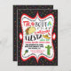 Taco om en mexikansk inbjudan till Fiesta-partiet med roligt och funky typsnitt och illustrationer. McBooboos illustration av hand plockade. Underbar för alla student, pension party, uppvärmning av hemmet, möhippa, babydusch eller Taco-teman.