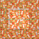 Den här roligten är mexikanska livsmedelsinspirerade väv som illustrerar takos, burritos och mycket mer på orangens bakgrund.