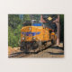 Ett tåg som korsar en bock i ett skogsbevuxet område.