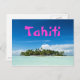 Vykort med en öken eller en obebodd ö med kokokosnöt handflatan träd nära Tahiti i Fransk Polynesien i Stilla havet.