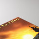 Vintern i Arktis taiga. Med sol vid horisonten brinner snö glöderna och himmel orange och gult. Anpassa genom att lägga till egen text.