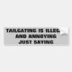 Tailgating olagligt och förargligt, precis ordstäv bildekal