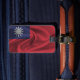 Bagageetikett med Taiwans flagga i vågig tygstil. Denna design har Taiwans flaggas färger och design med en vacker vågande materialstruktur effekt. Denna flaggdesign är ett bra sätt att visa att du är stolt över att vara från Taiwan.