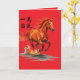 A vivid, high-energy illustration: a powerful chestnut horse bolts forward, every muscle taut and lit with warm highlights. A mix of orange and red, and the mane and tail are rendered like streaks of flame, tossing wildly and amplifying the sense of speed.
