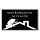 Affärskort av takgarantins magnetmall, inklusive en enkel svartvit design med house tak och takofer med en hammare i handen på arbetet. Designad för en taktjänst, ombyggnad av hemmet eller entreprenör.