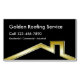Affärskort av takverkets magnetmall med en svart bakgrund och guld tittar tak-symbol som är Designad för en taktjänst, ombyggnad av hemmet eller byggentreprenör.