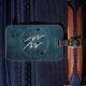 En konstellation av svarta stjärnor flyter över den astrologiska symbolen för Aquarius vid vatten, omgiven av ett silver astro-diagram ram på en nödlidande tealblått bakgrund. Perfekten tillbehör till någon som är född under Luft-tecknet av Aquarius - 20 januari-18 februari