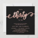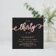 Elegant Chic Talk 30 to Me Script Black and Ro Guld 30års födelsedag Call. I den moderna kvinnomallen födelsedagsfest inbjudan finns snyggt "Talk Thirty To Me" i stor faux guld-folie från ro med snabb handskriven kalligrafi (eller typografi)-skript med svan-teckensnitt, party-detaljer i ro guld färg med svart bakgrund. Vid den omvända sidan av faux-folie-abstrakten i ro vågar man snabbt runt cirkeln mönster mot svart bakgrund i färg. Perfekt för att fira, gigantiskt trettionde milstolpe-födelsedagar i stil. Den här inbjudan tillför en gnutta glamor till alla feminina party.