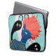 Spooky surreal laptop sleeve med en vektorbild av en främmande flicka med blått skinn, rött hår och glödande ögon, omgiven av sina fantastiska vänner som är söta svarta och vita spökarna. Den här konstigens psykiska konst kommer att tilltala en person som tycker om mörk, fräcka, konstiga konst och är underbarare även för Halloween.