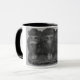 Vintageapastatyn talar, hör, ser, gör ingen ondska. Svartvitt. 11oz. mugg
