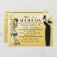 1920-talet Flapper och en mjuk man i en tux och top hat inbjudan till en Underbar Gatsby, Roaring 20-tal eller Speakeasy Party. Vintage illustrationer och Art Deco-accenter. Faux guld.